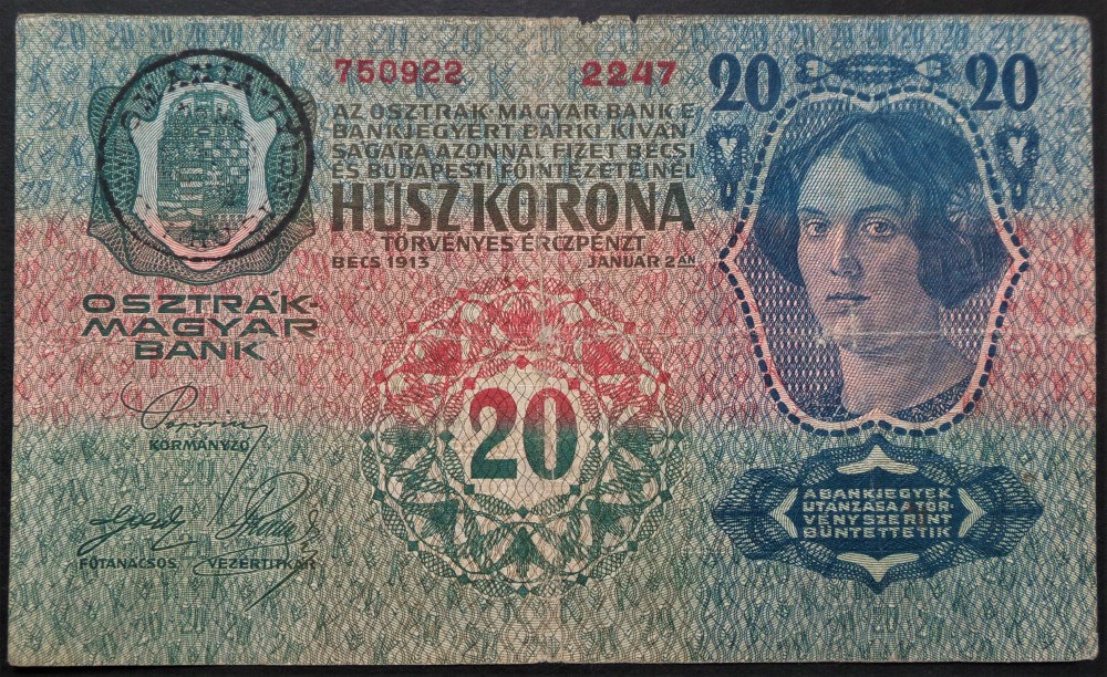 Bancnota istorica 20 COROANE - ROMANIA (AUSTRO-UNGARIA) , anul 1913 * cod 141