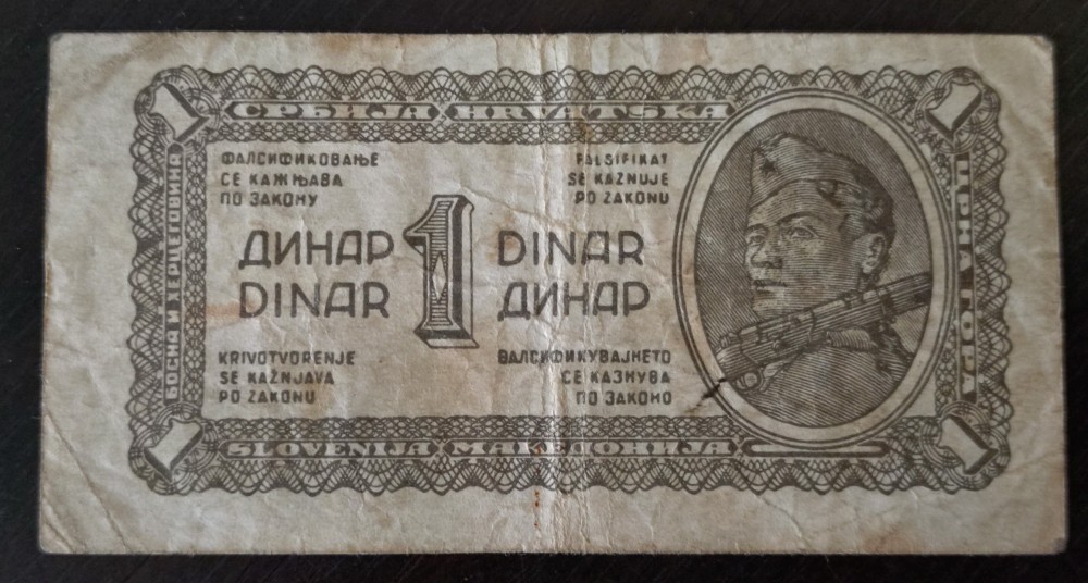 Bancnota Iugoslavia - 1 Dinar 1944.