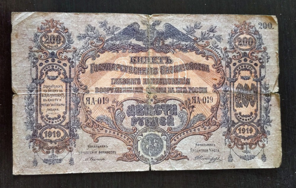 Bancnota - Rusia de Sud - 200 Roubles 1919.