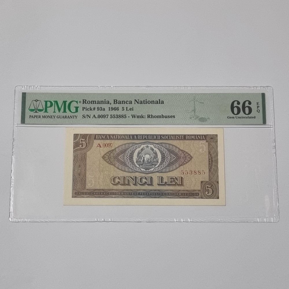 BANCNOTA UNC 5 LEI 1966 GRADATA - PMG 66 EPQ
