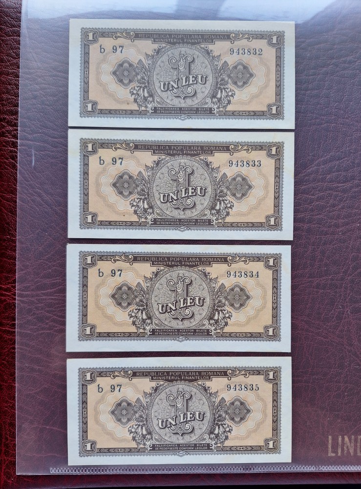 Bancnote 1 leu 1952 consecutive XF/AU