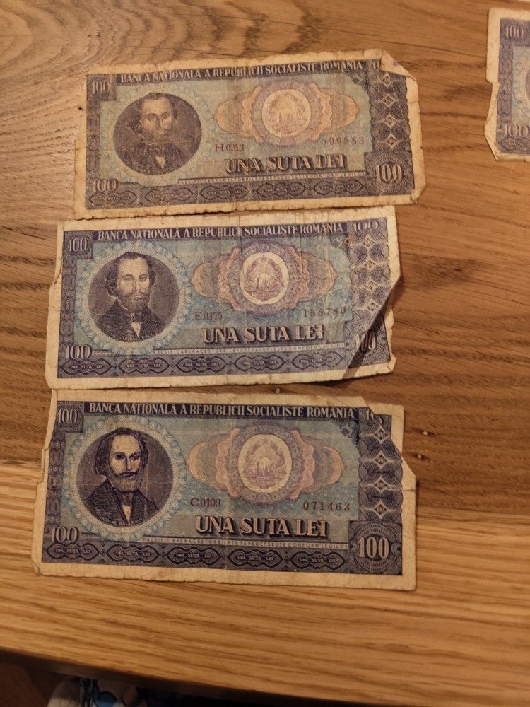 Lot 9 bancnote 100 lei România, 1966 Stare: aproape nouă, foarte