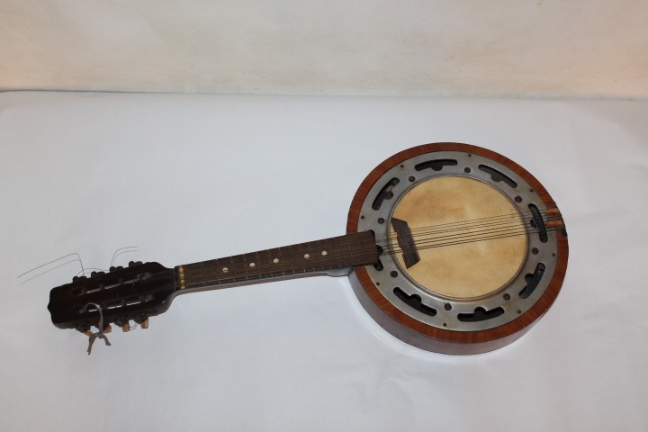banjo, instrument muzical, in stare buna, complet, L 62 cm,