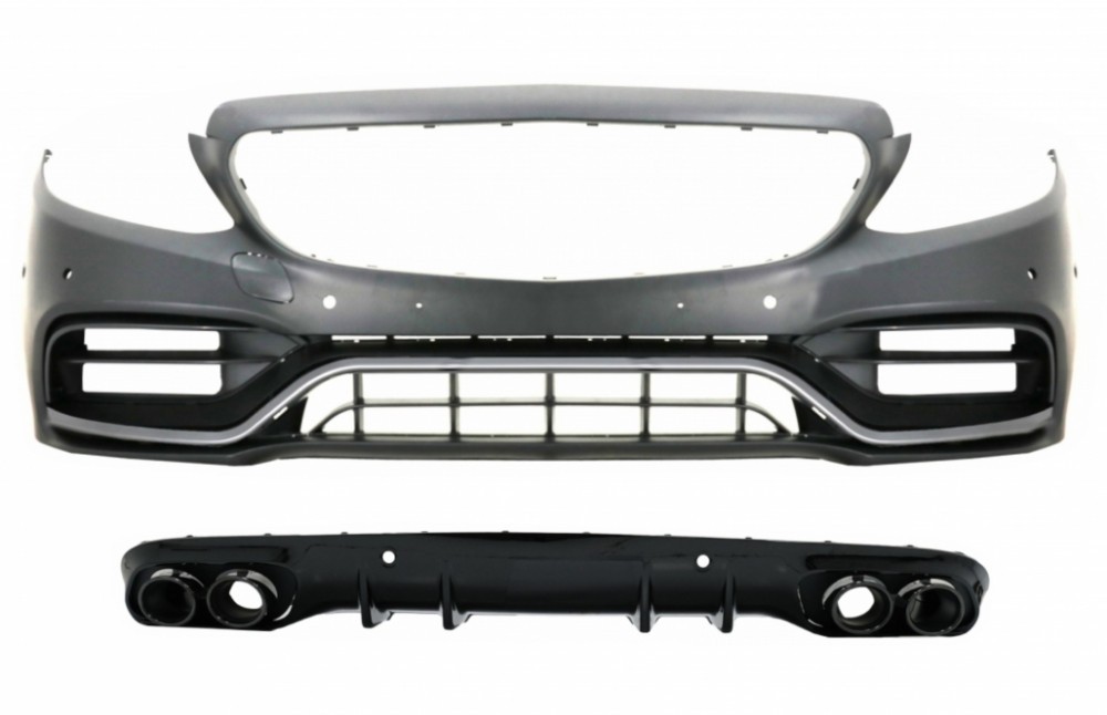 Bara Fata cu Difuzor Spate si Ornamente evacuare Mercedes C-Class A205 Cabrio C205 Coupe (2014-2019) Facelift Design Negru Crom Performance AutoTuning
