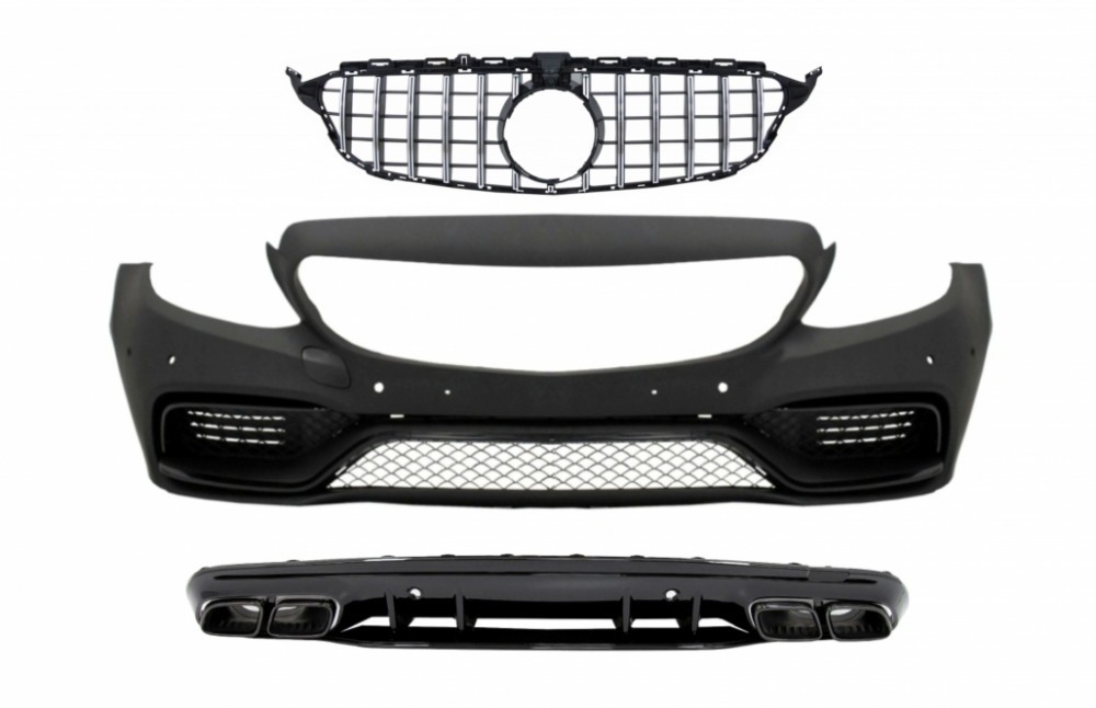 Bara Fata cu Grila Crom si Difuzor MERCEDES C-Class W205 S205 (2014-2018) C63 Design Performance AutoTuning