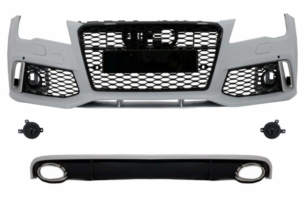 Bara Fata & Difuzor Bara Spate cu Ornamente Evacuare AUDI A7 4G (2010-2014) RS7 Design Performance AutoTuning