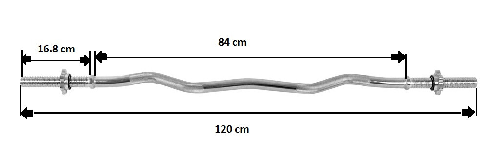 Aceasta are o lungime de 120 cm si un diametru de 24 mm. Bara are forma curbata, cu capete filetate si este fabricata din fier nichelat de calitate.