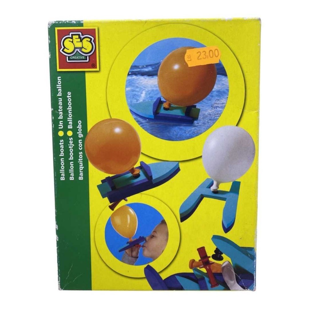 Barcuta mica de jucarie pare este propulsata de forta aerului. In cutie se veti gasi o mica barca si cateva baloane. Pentru a pune barca in miscare pe apa, este necesar sa se umfle balonul si sa se introduca in tija aflata in spatele barcii. Atunci cand aerul va iesi cu rapiditate pe sub barca, va pune in miscare barcuta. Jucarie recomandata copiilor cu varsta peste 3 ani.