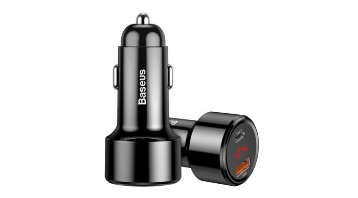 - Intelligent car charger with LED voltage/power display and support of all most popular quick charge technology