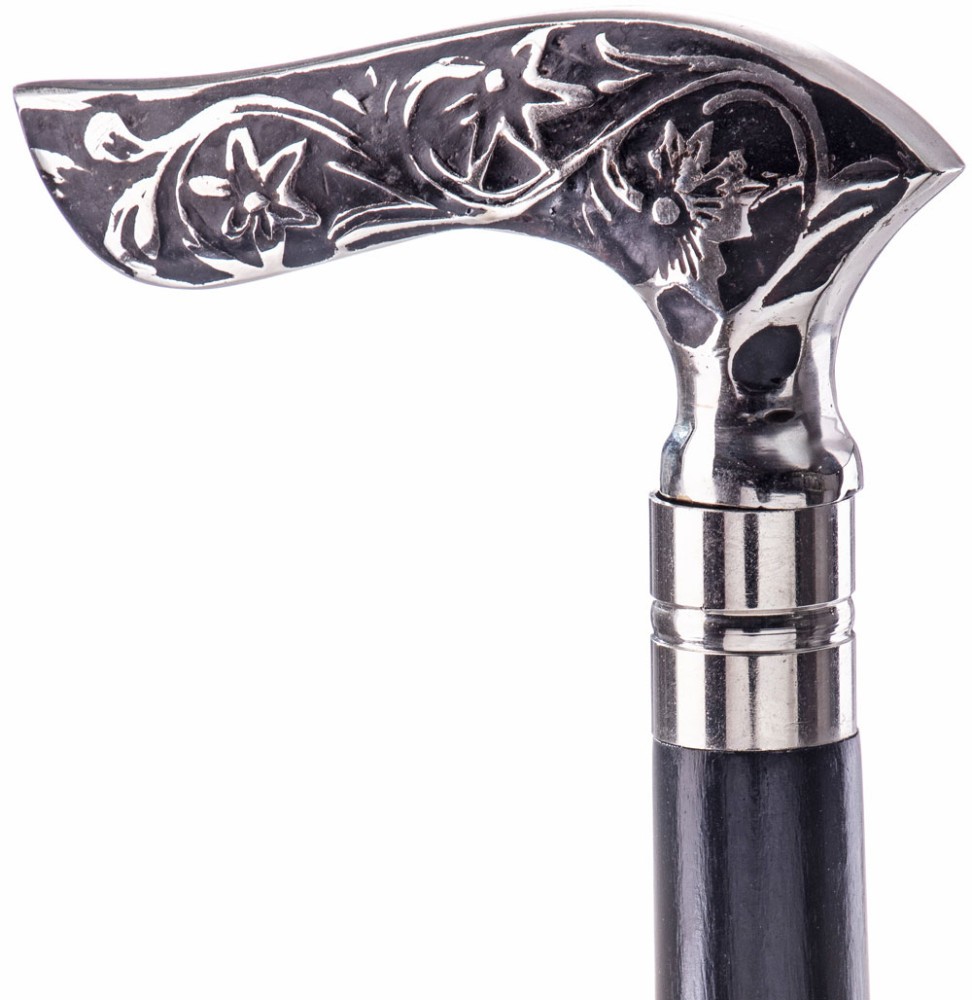 negru cu maner din alama masiva cu finisaj argintiu si flori