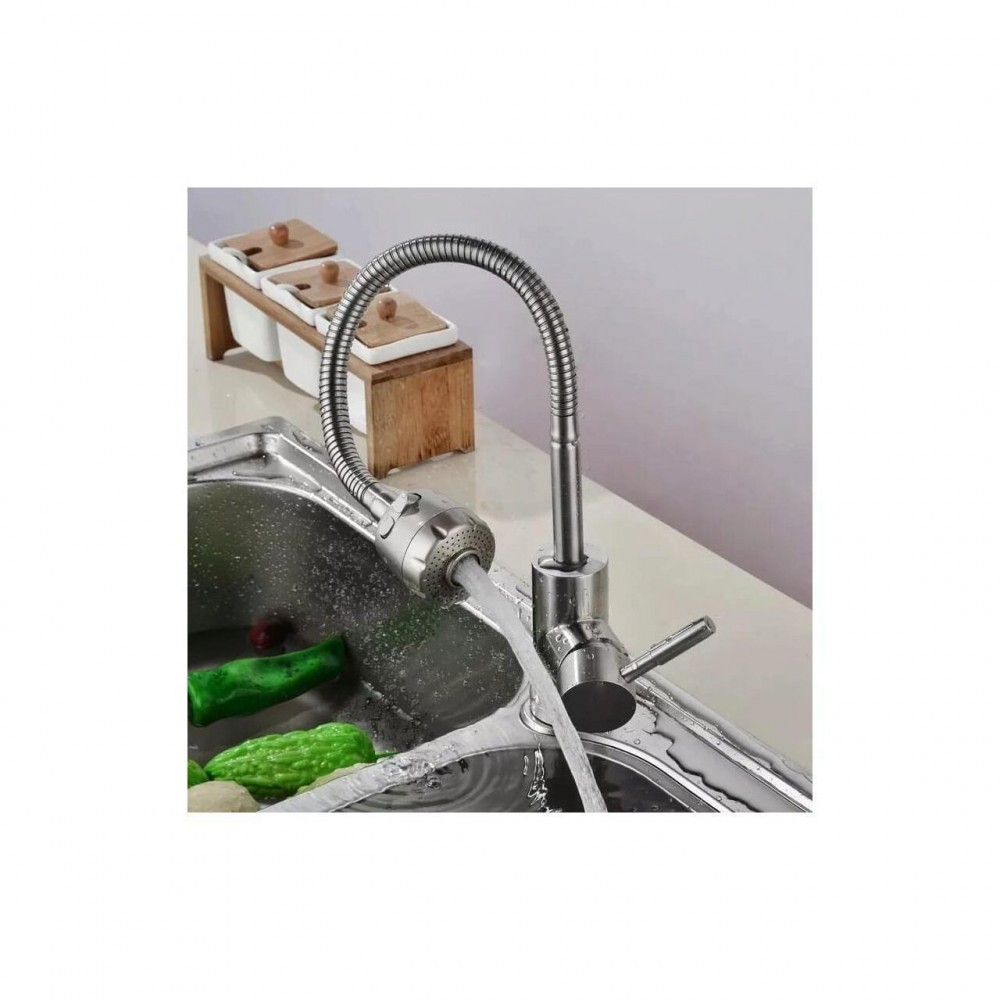Baterie bucatarie monocomanda inox satin cu pipa flexibila Korman CF031