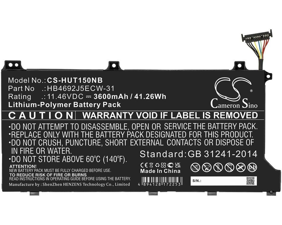 Baterie compatibila Laptop, Huawei, MateBook D15 BOB-WAE9P, BOB-WAH9, BoH-WAQ9R, CS-HUT150NB, 3ICP5/62/81, HB4692J5ECW-31, 11.46V, 3600mAh, 41.26Wh
