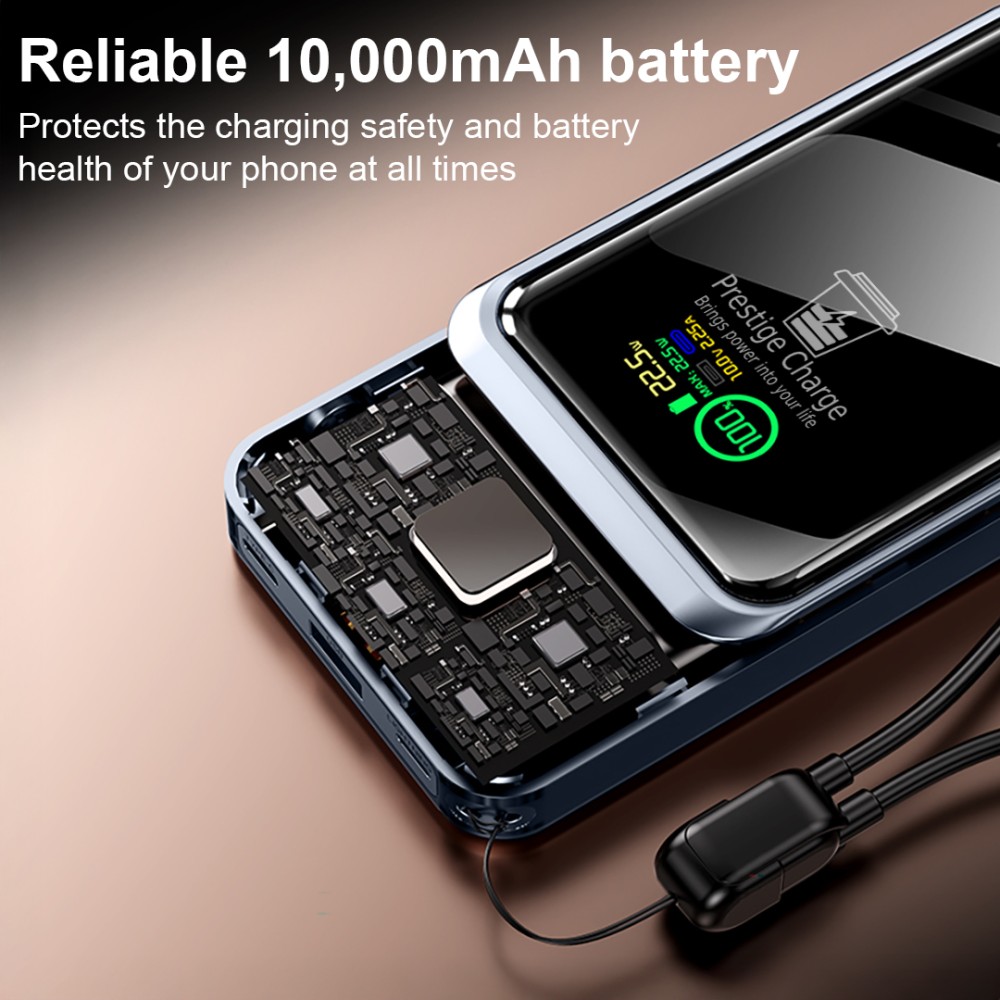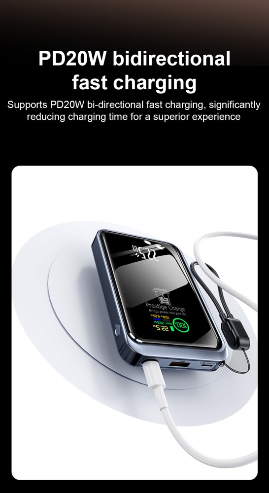 Bateria externa este echipata cu circuite avansate de protectie si tehnologie de control al temperaturii. Incarca-ti dispozitivele rapid, fara riscul de supraincalzire, in timp ce afisajul digital iti arata in timp real nivelul exact al energiei ramase.