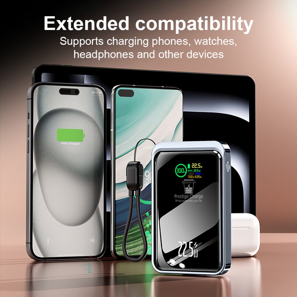 De la smartphone-uri si tablete, la casti si ceasuri inteligente, acest power bank este tot ce ai nevoie. Datorita capacitatii sale generoase si a iesirilor multiple, poti incarca mai multe gadgeturi simultan, ramanand mereu conectat.