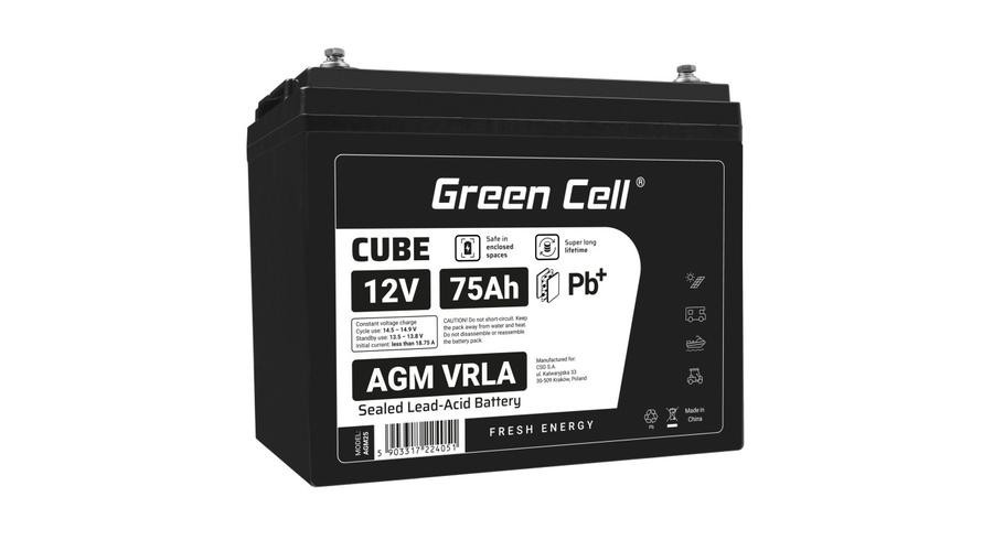 Baterie Green Cell CUBE AGM IP54 12V 75Ah VRLA Gel deep cycle, scuter, cositoare, barca, tractor