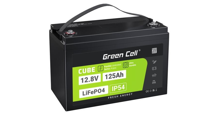 Baterie Green Cell CUBE LiFePO4 125Ah 12.8V 1600Wh Litiu Fier Fosfat pentru rulotă, solar, sistem off-grid, barcă