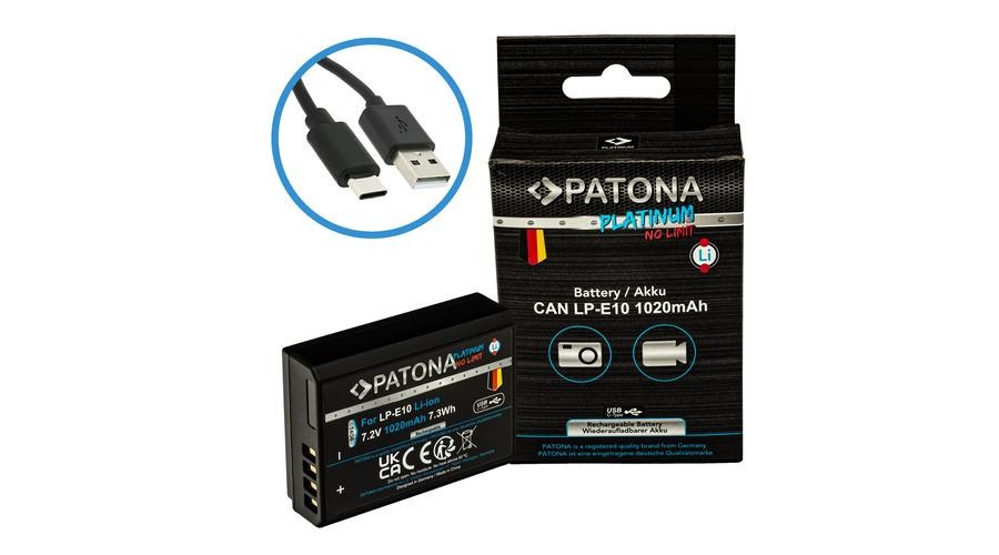Baterie PATONA platină cu intrare USB-C pentru Canon LP-E10 LPE10 EOS1100D EOS 1100D