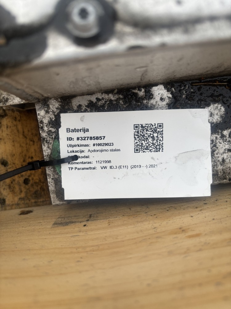 Baterie VW ID.3 E11 . OEM: 0Z1915911M,62kWh . Aceasta este o piesă originală de la producător, asigurând calitatea și compatibilitatea cu vehiculul dumneavoastră. . Expediem în siguranță din depozitele noastre din Europa Centrală și de Nord, folosind soluții logistice de încredere. Suntem cel mai mare depozit de piese auto din dezmembrări din Europa de Nord, oferind o gamă largă de piese second-hand precum motoare, baterii pentru vehicule electrice, cutii de viteze etc. Gama noastră include piese pentru BMW, Mercedes-Benz, Audi, VW, Seat, Toyota, Lexus, Tesla, Nissan, Peugeot, Citroen, Renault, Land Rover, Jaguar și alte mărci auto. Oferim garanție pentru piese originale și politică de retur. Când ne sunați, vă explicăm condițiile de garanție pentru fiecare caz în parte și organizăm livrarea folosind logistică modernă. Piesele uzate sunt acoperite de garanție.