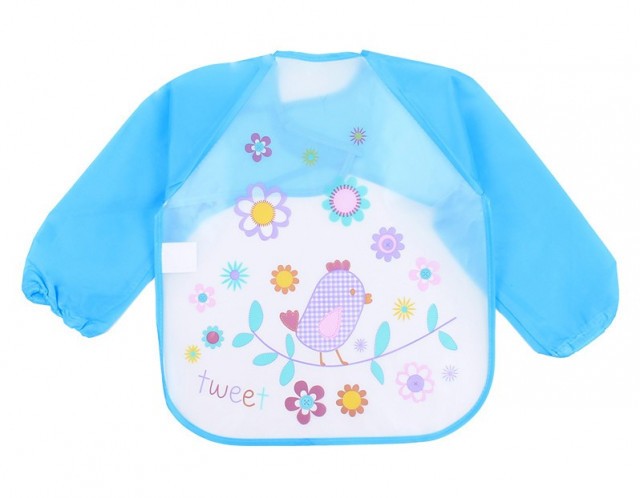 Scapa de grija hainutelor murdare. Bavetica cu manecute lungi asigura protectie fiind usor de curatat. Partea din fata este din EVA (polietilena acetat de vinil), usor de sters si totodata sigur pentru copii.
