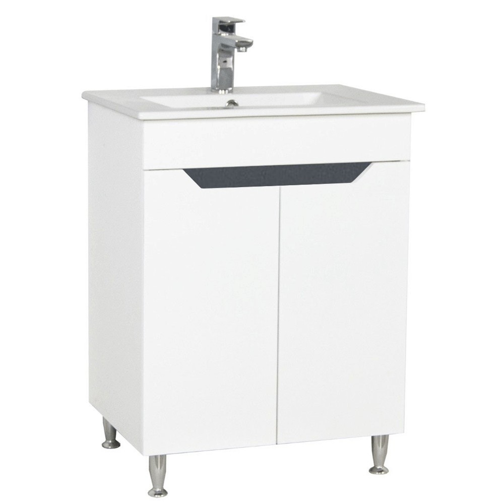 Baza si lavoar ceramic GN0561, mobilier baie stativ 50 cm, front MDF, 2 usi, 2 rafturi, picioare cromate reglabile, alb/antracit se incadreaza perfect in orice decor datorita dimensiunilor reduse si liniilor drepte ce il fac potrivit pentru o baie cu design modern.