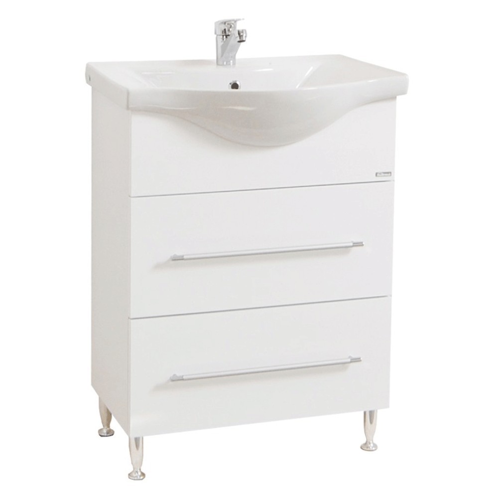 Baza si lavoar ceramic GN1871, mobilier baie stativ 60 cm, front MDF, 1 sertar, 1 usa, picioare cromate reglabile, alb