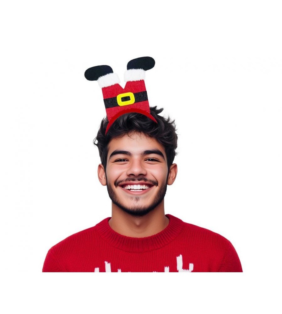 Adaugă un plus de veselie sărbătorilor cu Bentița Crăciun Picioare Moș Crăciun, un accesoriu