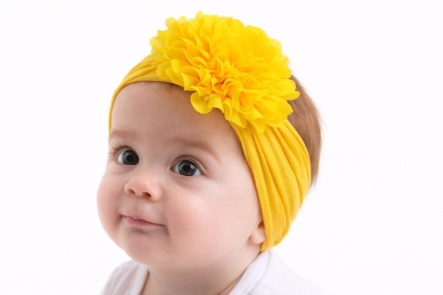 Bentita lata pentru fetite, elastica si moale cu o floare aplicata in fata. Este lejera pentru capul bebelusului, modelandu-se cu usurinta.