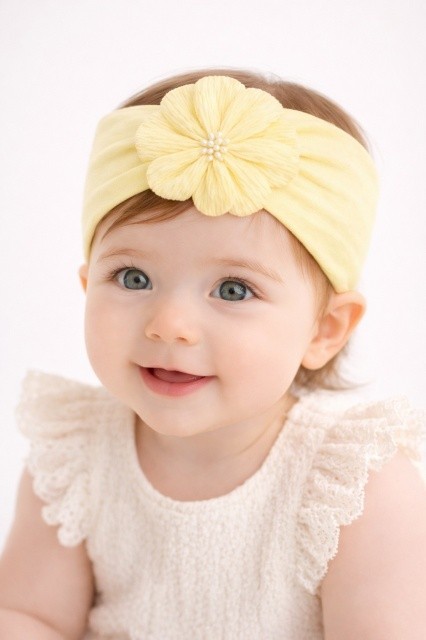 Bentita lata galbena pentru bebeluse cu floare aplicata