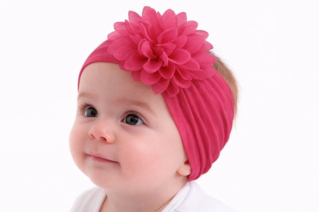 Bentita lata pentru fetite, elastica si moale cu o floare aplicata in fata. Este lejera pentru capul bebelusului, modelandu-se cu usurinta.