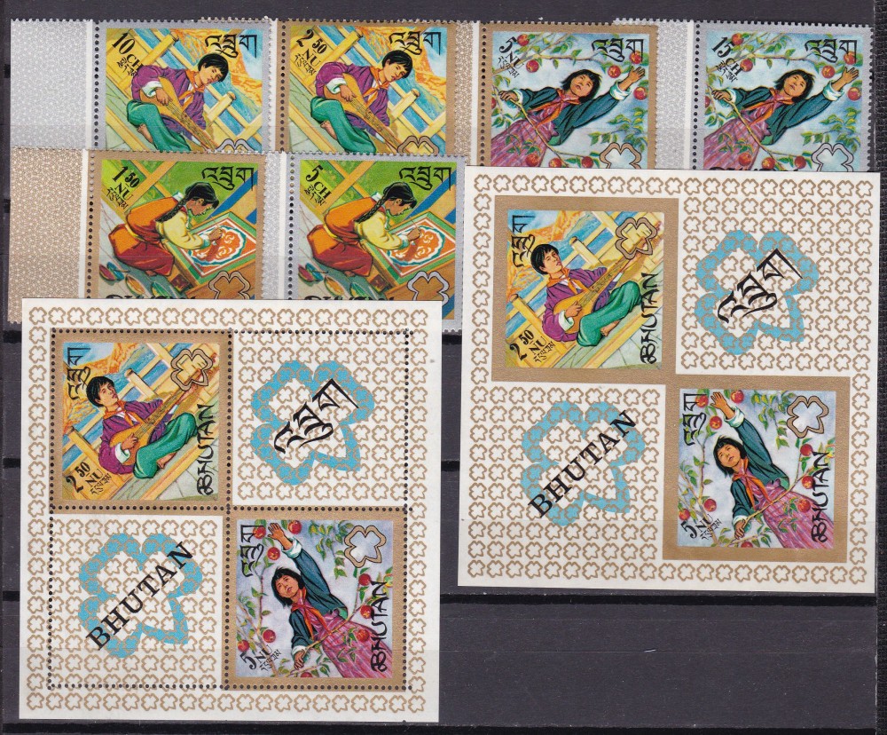 Bhutan 1967 scouting MI 161-166 + bl. 9A, 9B MNH
