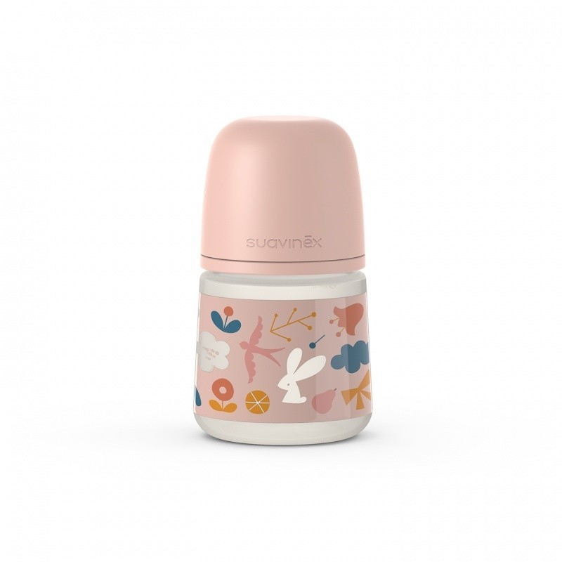 Biberon din silicon, 150ml, sx pro debit lent, roz, suavinex