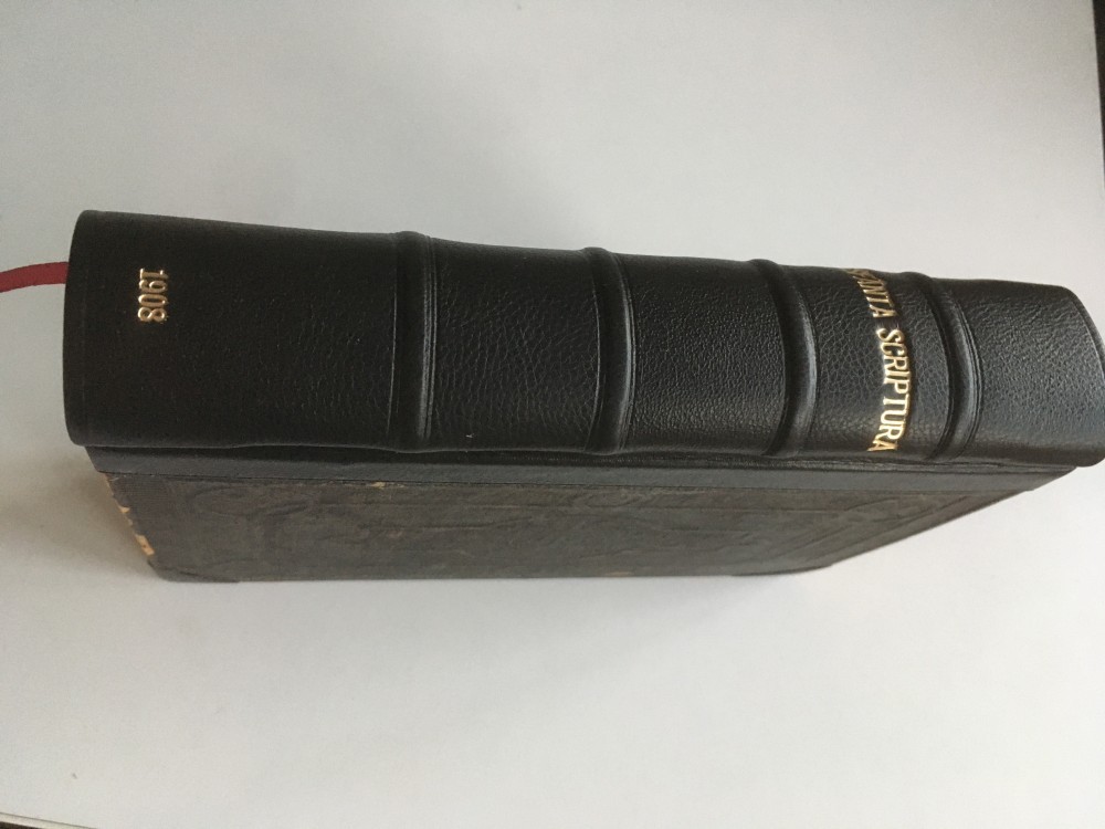 BIBLIA NITZULESCU BUCURESTI 1908 STARE EXCELENTA: COPERTI ORIGINALE, COTOR RECONDITIONAT+ COLTARE PIELE. CU 4 HARTI COLOR LA SFARSITUL VOLUMULUI