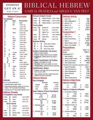Students of biblical Greek and Hebrew may not know everything they need to know, but they do know there's a lot they need to know Whether studying for exams or translating passages of Scripture, students need critical information at their fingertips. Instead, it's usually scattered throughout textbooks, self-made crib sheets, and sticky-notes on their computer monitor. Now there's a better way The Zondervan Get an A Study Guides to Biblical Greek and Biblical Hebrew are handy, at-a-glance study aids ideal for last minute review, a quick overview of grammar, or as an aid in translation or sermon preparation. Each set contains four information-packed sheets that are laminated and three-hole-punched, making them both durable and portable. The study guides are tied to Zondervan's Basics of Biblical Greek and Basics of Biblical Hebrew.