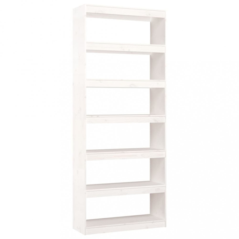 Biblioteca/Separator camera, alb, 80x30x199,5 cm lemn masiv pin