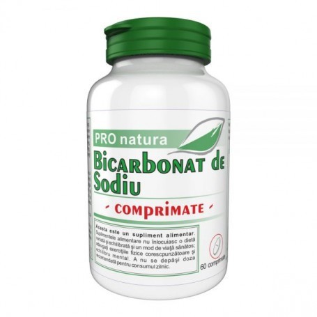 Ce este Bicarbonatul de Sodiu? Bicarbonatul de sodiu este un compus alcalin utilizat pentru reglarea pH-ului esofagogastroduodenal. Cum se administrează acest produs? Se recomandă administrarea a 1-2 comprimate pe zi, după mesele principale, cu un pahar de apă plată. Există contraindicații la utilizarea acestui produs? Produsul trebuie păstrat ferit de lumină și umiditate și nu trebuie lăsat la îndemâna și vederea copiilor mici. De asemenea, nu trebuie să se depășească doza recomandată pentru consumul zilnic.Galerie foto