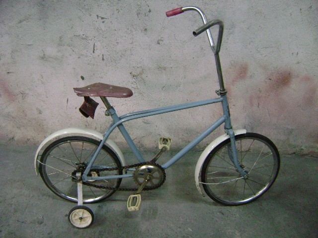 Bicicleta veche pentru copii marca Ideal Medias.Vopsea originala stare originala fara modificari saua spate este sparta si lipseste o bucata si un maner plastic ghion.