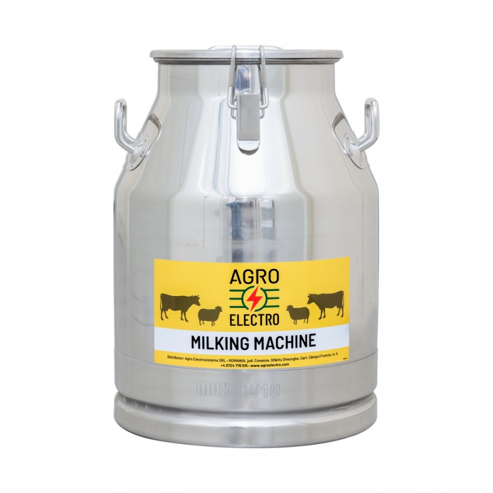 Bidon inox pentru transport lapte, cu capac tip clips, 30 litri