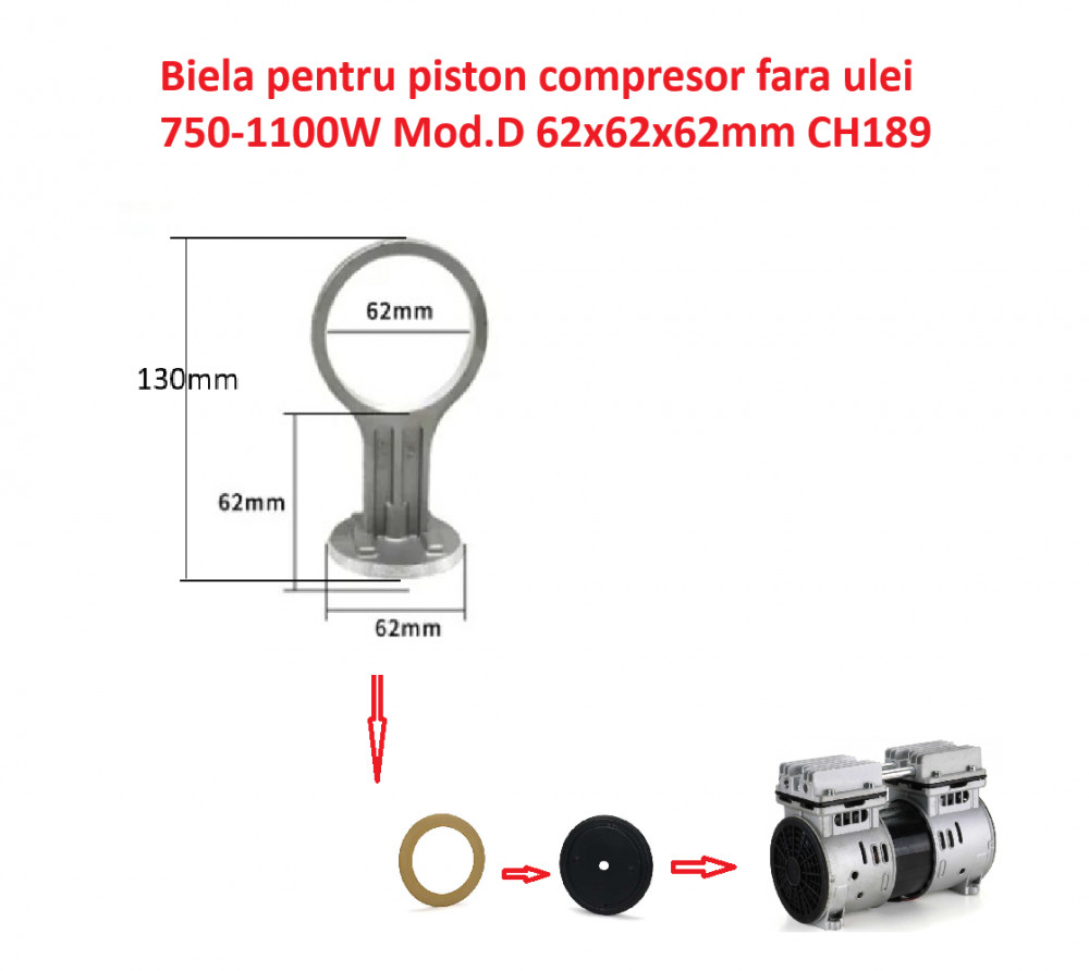 Biela pentru piston compresor fara ulei 750-1100W Mod.D 62x62x62mm CH189