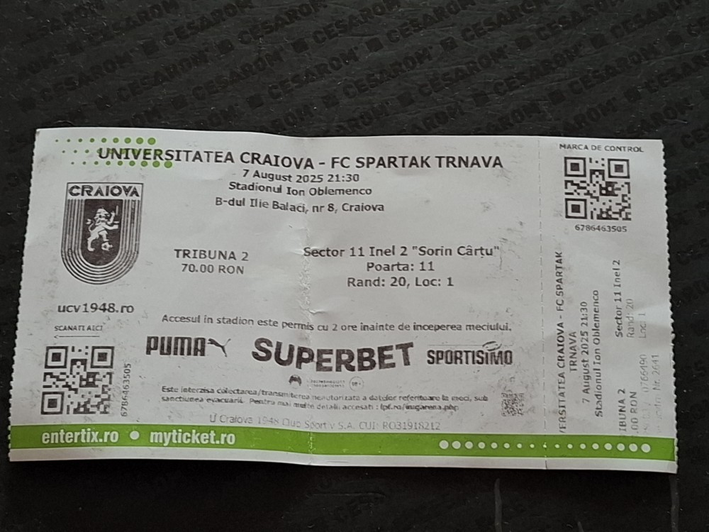 Bilet meci craiova-spartak trnava