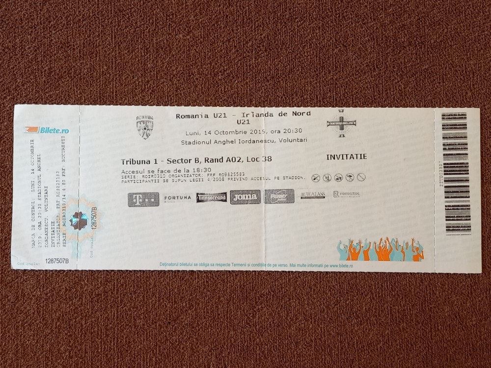 Bilet meci fotbal ROMANIA U21 - IRLANDA de NORD U21 (14.10.2019)