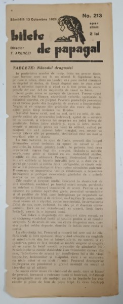 BILETE DE PAPAGAL , DIRECTOR T. ARGHEZI , NR. 213 , 1928