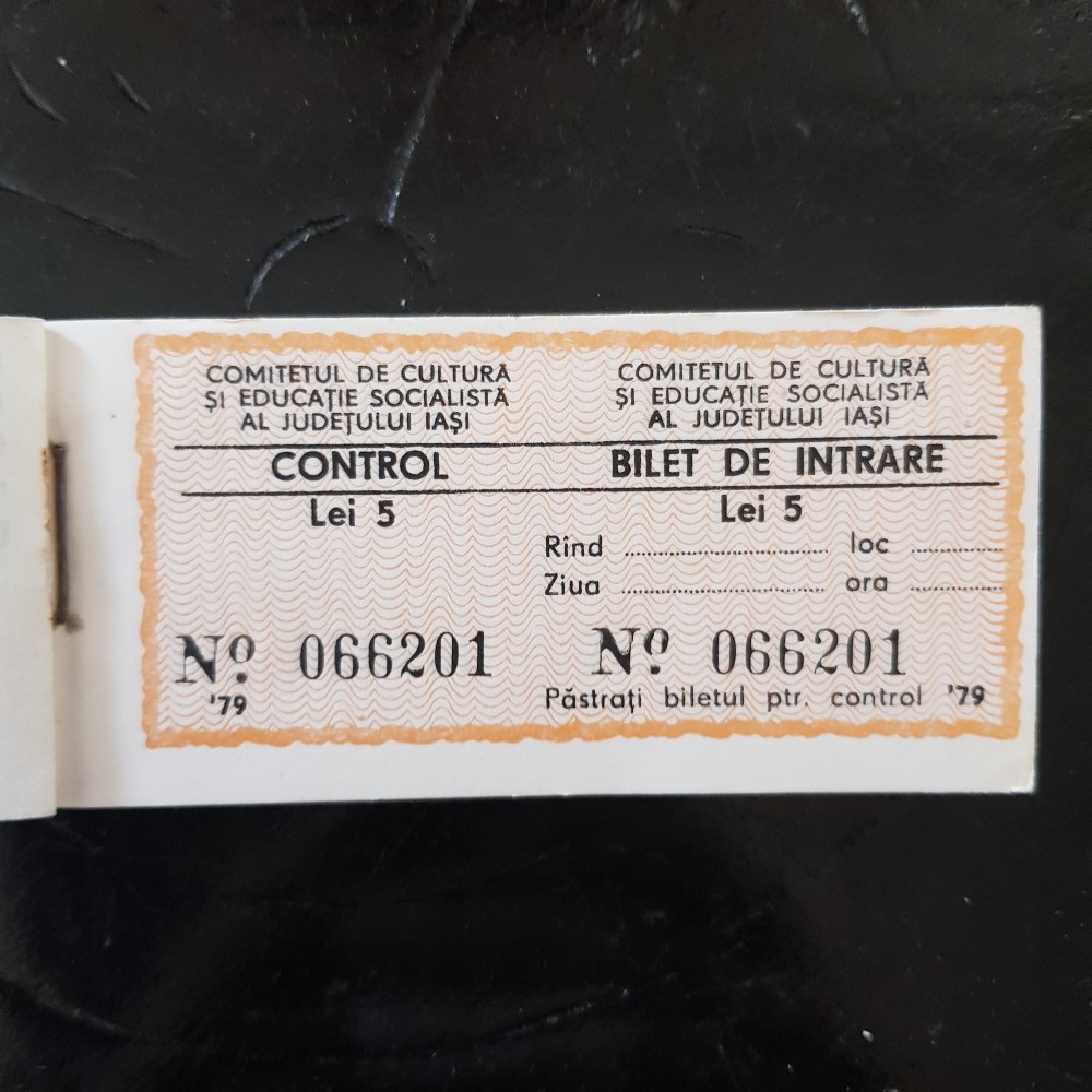 100 de bilete pentru spectacole, evenimente-carnet cu 100 bucăți cu valoarea de 5 lei-Romania anii 70.