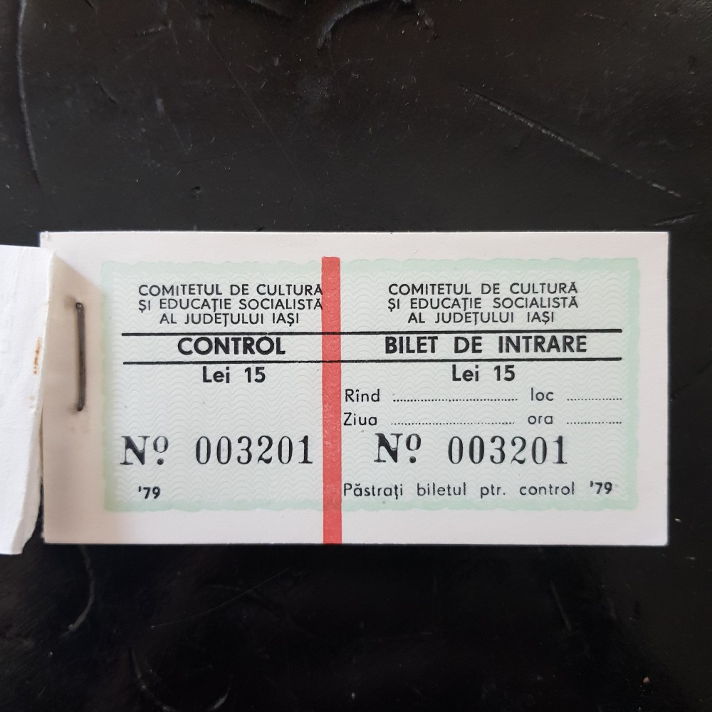 100 de bilete pentru spectacole, evenimente-carnet complet cu 100 bucăți cu valoarea de 15 lei-Romania anii 70-rog apreciere dupa fotografii.