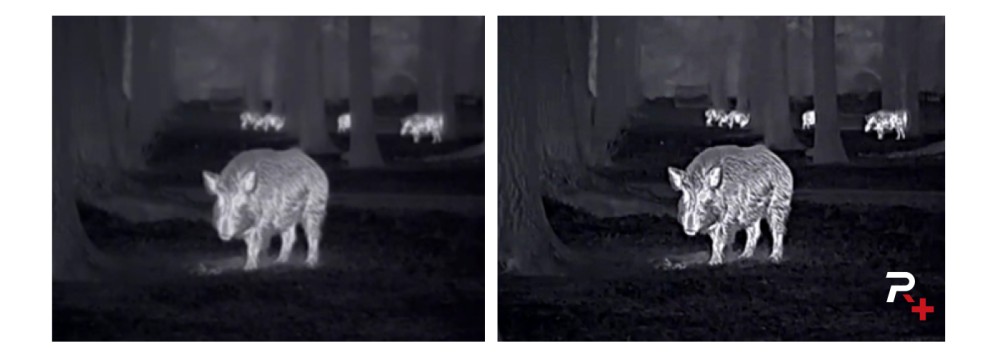 Reality+ utilizează tehnologie de rețele neuronale convoluționale profunde de top în industrie, susținută de un set de date de antrenare vast, care depășește cu mult standardele obișnuite, asigurând o precizie ridicată a algoritmului. Această tehnologie îmbunătățește automat detaliile imaginii, elimină zgomotul și interferențele din imaginile în infraroșu și evită supra-netezirea specifică tehnicilor tradiționale de reducere a zgomotului, păstrând detalii fine până la fiecare fir de blană al animalelor, realizând un salt semnificativ în calitatea imaginii.