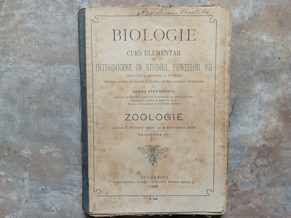 BIOLOGIE -CURS ELEMENTAR DE INTRODUCERE IN STUDIUL FIINTELOR - SABBA STEFANESCU 1895