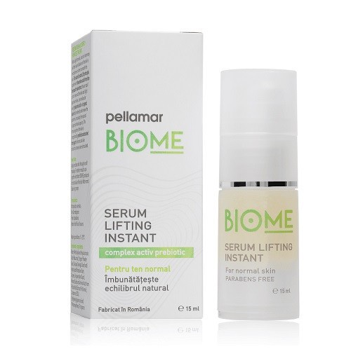 Formula u?oara ac?ioneaza în armonie cu echilibrul natural al microbiomului pielii pentru a netezi pielea. Principiul activ natural Instant Lift ajutat de aminoacizii extractului de namol terapeutic are o ac?iune rapida de netezire a pielii ?i estompare a ridurilor. Acidul hialuronic cu masa moleculara mica ?i siliciul organic redensifica epiderma ?i maresc capacitatea naturala de sinteza a colagenului. Sistemul imunitar al pielii este întarit de prebioticele extrase din iaurt, procesele naturale de protec?ie ale pielii sunt stimulate. Se aplica pe pielea curata, masând u?or. Pentru rezultate optime se recomanda folosirea întregii scheme de îngrijire Biome pentru ten normal. A se feri de umiditate si lumina directa a soarelui si la temperaturi cuprinse intre 5 grade celsius si 25 de grade celsius.