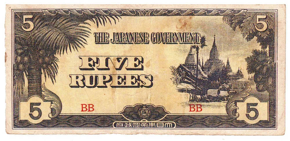 Birmania ( Ocupatia Japoneza ) 5 Rupees 1942 P-15b B1