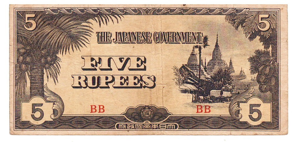 Birmania ( Ocupatia Japoneza ) 5 Rupees 1942 P-15b B7