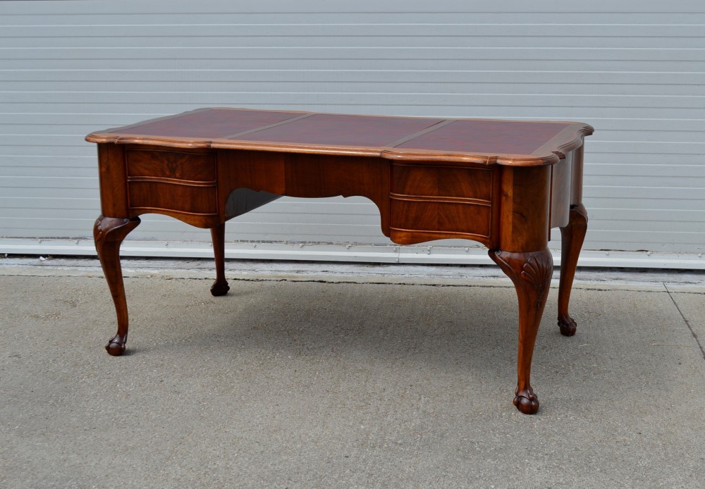 Birou central in stil Chippendale, din lemn masiv de mahon, model curbat, sculpturi manuale, produs restaurat, perioada 1900.