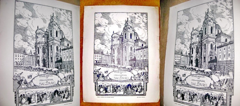 Biserica Studien Kirsche Salzburg Austria gravura alb negru. Perioada inainte de razboi, marimi: 32.5_25 cm. Gravura in stare buna marginea din partea dreapta cu defecte.